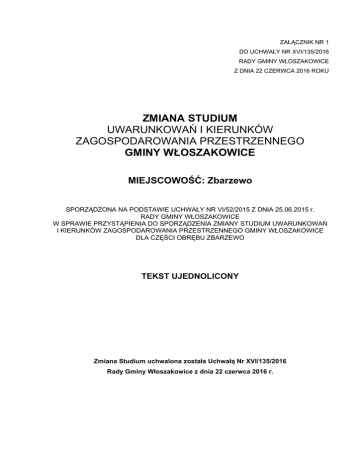 ZAŁĄCZNIK NR 1 DO UCHWAŁY NR XVI/135/2016 RADY GMINY WŁOSZAKOWICE Z DNIA 22 CZERWCA 2016 ROKU ZMIANA STUDIUM UWARUNKOWAŃ I KIERUNKÓW ZAGOSPODAROWANIA PRZESTRZENNEGO GMINY WŁOSZAKOWICE MIEJSCOWOŚĆ: Zbarzewo SPORZĄDZONA NA PODSTAWIE UCHWAŁY NR VI/52/2015 Z DNIA 25.06.2015 r. RADY GMINY WŁOSZAKOWICE W SPRAWIE PRZYSTĄPIENIA DO SPORZĄDZENIA ZMIANY STUDIUM UWARUNKOWAŃ I KIERUNKÓW ZAGOSPODAROWANIA PRZESTRZENNEGO GMINY WŁOSZAKOWICE DLA CZĘŚCI OBRĘBU ZBARZEWO TEKST UJEDNOLICONY Zmiana Studium uchwalona została Uchwałą Nr XVI/135/2016 Rady Gminy Włoszakowice z dnia 22 czerwca 2016 r. ZMIANA STUDIUM UWARUNKOWAŃ I KIERUNKÓW ZAGOSPODAROWANIA PRZESTRZENNEGO GMINY WŁOSZAKOWICE SPIS TREŚCI I. Podstawa formalno-prawna zmiany Studium.....................................................................3 II. Przedmiot i obszar zmiany Studium...................................................................................3 III. Studium uwarunkowań i kierunków zagospodarowania przestrzennego gminy Włoszakowice – tekst ujednolicony ............................................................................4-124 IV. Wyszczególnienie zmiany studium opracowanej na podstawie Uchwały Nr IV/23/2011 Rady Gminy Włoszakowice z dnia 21 stycznia 2011 r. w sprawie przystąpienia do sporządzenia zmiany studium uwarunkowań i kierunków zagospodarowania przestrzennego gminy Włoszakowice...........................................................................................................125-130 V. Wyszczególnienie zmiany studium opracowanej na podstawie uchwały nr XXXII/236/2010 rady gminy Włoszakowice z dnia 8 kwietnia 2010 r. w sprawie przystąpienia do sporządzenia zmiany studium uwarunkowań i kierunków zagospodarowania przestrzennego gminy Włoszakowice......................................................................131-136 VI. Wyszczególnienie zmiany studium opracowanej na podstawie uchwały Nr VI/52/2015 rady gminy Włoszakowice z dnia 25 czerwca 2015 r. w sprawie przystąpienia do sporządzenia zmiany studium uwarunkowań i kierunków zagospodarowania przestrzennego gminy Włoszakowice dla części obrębu Zbarzewo.....……………..137-143 2 I. Podstawa formalno-prawna zmiany Studium 1.1. Uchwała Nr VI/52/2015 rady gminy Włoszakowice z dnia 25 czerwca 2015 r. w sprawie przystąpienia do sporządzenia zmiany studium uwarunkowań i kierunków zagospodarowania przestrzennego gminy Włoszakowice dla części obrębu Zbarzewo; 1.2. Ustawa z dnia 27 marca 2003 r. o planowaniu i zagospodarowaniu przestrzennym (tj. Dz. U. z 2015 r. poz. 199 ze zm.); 1.3. Rozporządzenie Ministra Infrastruktury z dnia 28 kwietnia 2004 r. w sprawie zakresu projektu studium uwarunkowań i kierunków zagospodarowania przestrzennego gminy (Dz.U. z 2004 r. Nr 118, poz. 1233). II. Przedmiot i obszar zmiany Studium Przedmiotem zmiany Studium sporządzonej na podstawie uchwały Nr VI/52/2015 rady gminy Włoszakowice z dnia 25 czerwca 2015 r. w sprawie przystąpienia do sporządzenia zmiany studium uwarunkowań i kierunków zagospodarowania przestrzennego gminy Włoszakowice dla części obrębu Zbarzewo. Zmiana Studium obejmuje podwórzec, park i obiekty folwarczne zespołu pałacowo folwarcznego wybudowane na przełomie XIX i XX w.. W ramach zmiany Studium wprowadza się możliwość zmiany przeznaczenia zgodnie z ustaleniami rozdziału VI ust. 2.1 Ustalenia, o których mowa w art. 10 ust. 2 ustawy z dnia 27 marca 2003 r. o planowaniu i zagospodarowaniu przestrzennym (tj. Dz. U. z 2015 r. poz. 199 ze zm.), w zakresie objętym niniejszą zmianą Studium zostały wprowadzone do ujednoliconego tekstu Studium uwarunkowań i kierunków zagospodarowania przestrzennego Gminy Włoszakowice w zakresie wynikającym z przyjętego układu tekstu studium oraz zostały wyszczególnione w rozdziale VI zgodnie z rozporządzeniem i wyróżnione podkreśleniem kropkowanym szarym. Obszar objęty zmianą Studium przedstawiono na rysunku Studium w skali 1 : 15 000 : 1. „Uwarunkowania zagospodarowania przestrzennego” 2. „Kierunki zagospodarowania przestrzennego” 3 WÓJT GMINY WŁOSZAKOWICE STUDIUM UWARUNKOWAŃ I KIERUNKÓW ZAGOSPODAROWANIA PRZESTRZENNEGO GMINY WŁOSZAKOWICE Studium uchwalone zostało Uchwałą Nr XXVIII/226/2005 Rady Gminy Włoszakowice z dnia 15.12.2005 r. Główny projektant mgr Marcin Englert ZOIU nr Z-364 mgr Maria Dobroń środowisko przyrodnicze mgr Andrzej Dobroń mgr Katarzyna Englert Środowisko kulturowe, i społeczne mgr inż.Janina Włodarczak infrastruktura techniczna inż. Maciej Kujawski opracowanie graficzne 4 WSTĘP 1. Cel i zakres opracowania Studium Uwarunkowań i Kierunków Zagospodarowania Przestrzennego Gminy Włoszakowice, zwane dalej Studium jest elementem systemu planowania przestrzennego ustalonego przepisami ustawy z dnia 27.03.2003 r. o planowaniu i zagospodarowaniu przestrzennym (Dz. U. Nr 80 poz. 717, z późn. zm.) Studium - obligatoryjne opracowanie planistyczne, dotyczące gminy w jej granicach administracyjnych, sporządzane jest na podstawie Uchwały Nr XXV/210/98 Rady Gminy Włoszakowice z dnia 18.06.1998 r. w sprawie przystąpienia do sporządzenia studium uwarunkowań i kierunków zagospodarowania przestrzennego gminy Włoszakowice. Podstawowym założeniem ustawy o zagospodarowaniu przestrzennym jest to, że zagospodarowanie przestrzeni, niezależnie od rodzaju, znaczenia i rozmiaru inwestycji lub przedsięwzięcia jak również ich realizatora, odbywa się zawsze na obszarze gminy. Oczywiście realizacja tych przedsięwzięć jest możliwa jedynie na terenach przeznaczonych na ten cel bowiem, zgodnie z przepisami Kodeksu Cywilnego, właściciel może korzystać z nieruchomości zgodnie z jej społeczno - gospodarczym przeznaczeniem. Tak więc w przepisach prawnych ustalono kompetencje w zakresie decydowania o przeznaczeniu terenów. I tak, stosownie do przepisów ustawy o samorządzie terytorialnym jak i ustawy o zagospodarowaniu przestrzennym, 