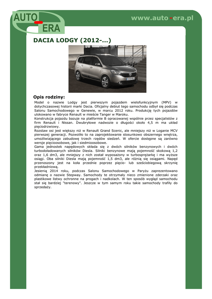 Opis rodziny: DACIA LODGY. - AUTO-ERA