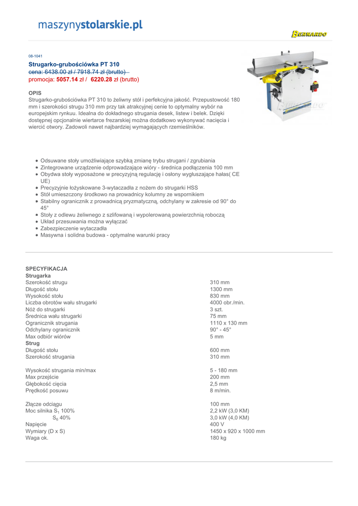 Strugarko-grubościówka PT 310 cena: 6512.00 zł / 8009.76 zł (brutto)