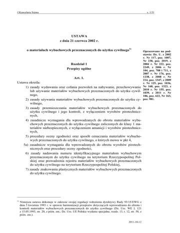 USTAWA z dnia 21 czerwca 2002 r. o materiałach wybuchowych