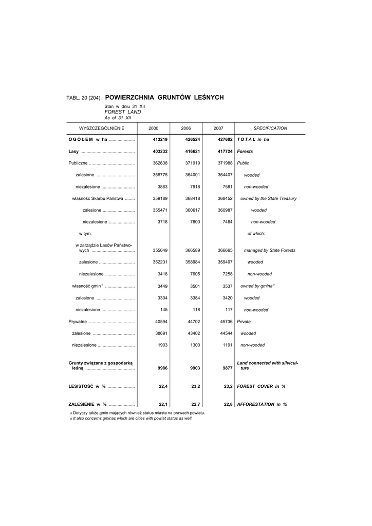 TABL. 20 (204). POWIERZCHNIA GRUNTÓW LEŚNYCH