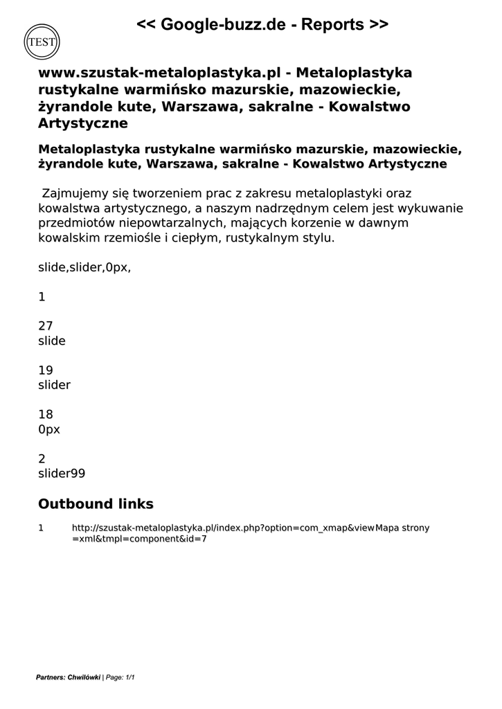 << Google-buzz.de - Reports >> www.szustak-metaloplastyka.pl - Metaloplastyka rustykalne warmińsko mazurskie, mazowieckie, żyrandole kute, Warszawa, sakralne - Kowalstwo Artystyczne Metaloplastyka rustykalne warmińsko mazurskie, mazowieckie, żyrandole kute, Warszawa, sakralne - Kowalstwo Artystyczne Zajmujemy się tworzeniem prac z zakresu metaloplastyki oraz kowalstwa artystycznego, a naszym nadrzędnym celem jest wykuwanie przedmiotów niepowtarzalnych, mających korzenie w dawnym kowalskim rzemiośle i ciepłym, rustykalnym stylu. slide,slider,0px, 1 27 slide 19 slider 18 0px 2 slider99 Outbound links 1 http://szustak-metaloplastyka.pl/index.php?option=com_xmap&view Mapa strony =xml&tmpl=component&id=7 Partners: Chwilówki | Page: 1/1 Powered by TCPDF (www.tcpdf.org) Powered by TCPDF (www.tcpdf.org)