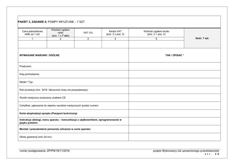 numer postępowania: ZP/PN/18/11/2016 podpis Wykonawcy lub