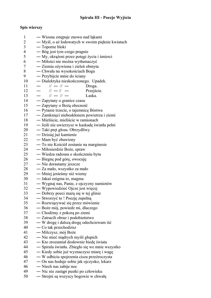 Spirala III - Poezje Wyjścia Spis wierszy 1 ― Wiosna zstępuje