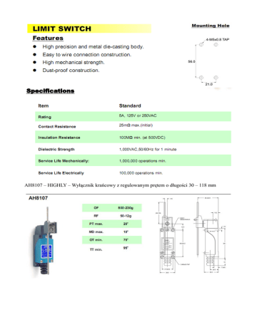 AH8107 – HIGHLY – Wyłącznik krańcowy z regulowanym prętem o