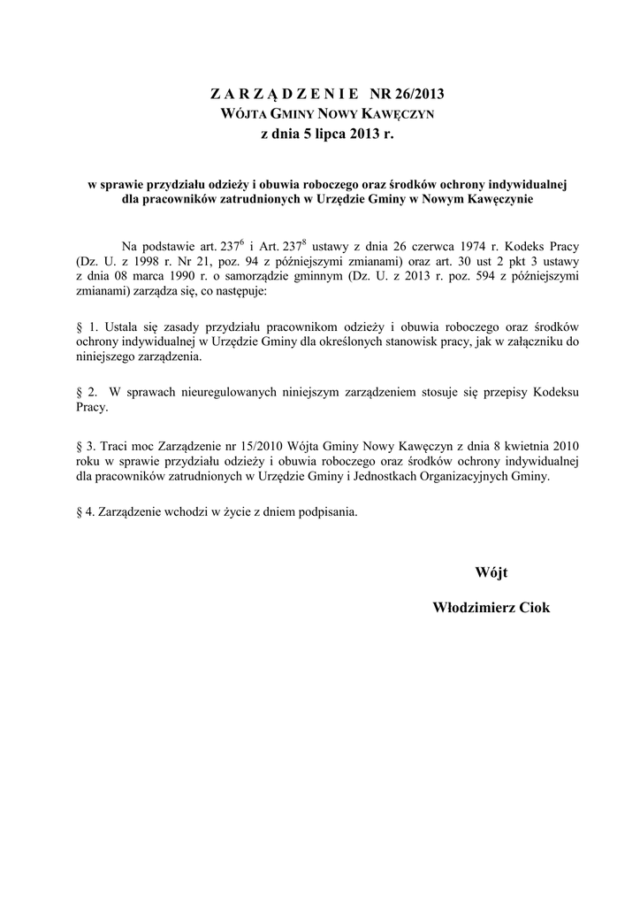 zarządzenie 26.2013 - Urząd Gminy Nowy Kawęczyn