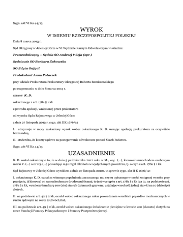 WYROK UZASADNIENIE - Portal Orzeczeń Sądu Okręgowego w