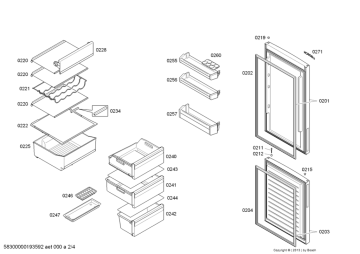 ID pozycji Nr części zamiennej Zamiennik Opis 0201 00713652 Drzwi 0203 00713648 Drzwi zamrażalnika 0204 00710489 Uszczelka drzwi 0211 00188194 Śruba 0212 00188187 Rolka 0215 00173861 Pokrywa 0219 00632822 Korek 0220 00746672 Panel szklany 0221 00689254 Taca 0222 00746673 Płyta szklana 0225 00746674 Pojemnik na warzywa 0228 00746675 Klapa 0234 00632366 Złączka 0240 00689250 Pojemnik na mrożonki 0241 00689249 Pojemnik na mrożonki 0242 00689248 Pojemnik na mrożonki 0243 00689251 Panel szklany 0244 00744466 Panel szklany 0246 00654244 Foremka do lodu 0247 00744467 Taca 0255 00746690 Taca 0256 00746690 Taca 0257 00746691 Taca 0260 00649479 Wkładka na jajka 0271 00780303 Naklejka 8401 00769226 Instrukcja obsługi 8402 00769238 Instrukcja obsługi 8403 00769239 Instrukcja obsługi 8404 00781167 Instrukcja obsługi 8411 00789436 Instrukcja montażu 8452 18002122 Instrukcja obsługi 8453 00784088 Instrukcja obsługi
