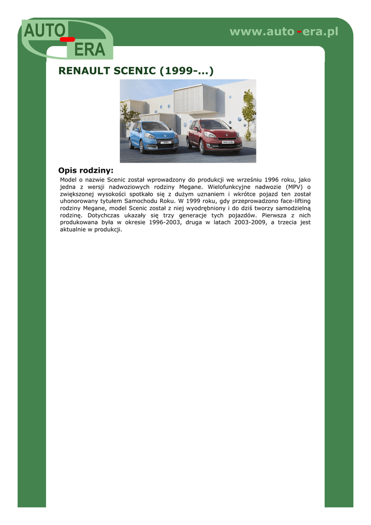 Opis rodziny: RENAULT SCENIC. - AUTO-ERA