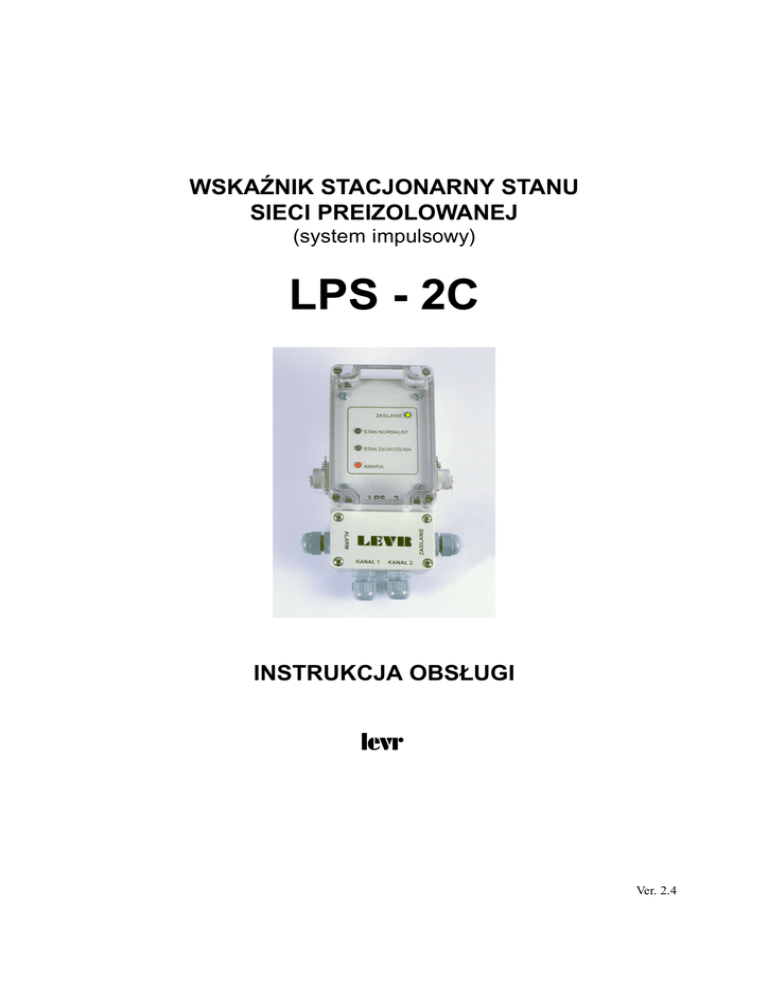 WSKAŹNIK STACJONARNY STANU SIECI PREIZOLOWANEJ (system impulsowy) LPS - 2C INSTRUKCJA OBSŁUGI levr Ver. 2.4 LPS-2C INSTRUKCJA OBSŁUGI 1. Informacje ogólne Detektor stacjonarny typ LPS-2C jest stosowany do kontrolowania stanu technicznego dwóch odcinków sieci ciepłowniczej preizolowanej z układem alarmowym impulsowym. Przyrząd LPS-2C wyróżnia i sygnalizuje trzy niżej opisane stany badanych odcinków sieci ciepłowniczej. STAN DOBRY (dioda LED zielona) STAN ZAGROŻENIA (dioda LED żółta) AWARIA (dioda LED czerwona) Dwa odcinki kontrolowanej sieci ciepłowniczej znajdują się w dobrym stanie technicznym. Przynajmniej w jednym z kontrolowanych odcinków sieci ciepłowniczej wartość rezystancji między przewodem alarmowym i rurą stalową jest bliska założonej wartości granicznej rezystancji przecieku. Układy alarmowe dwóch badanych odcinków sieci ciepłowniczej znajdują się w dobrym stanie technicznym. Warunkiem sygnalizacji tego stanu jest wykrycie przynajmniej jednego z niżej podanych przypadków: przeciek; brak kontaktu elektrycznego między detektorem i rurą stalową; przerwa elektryczna w obwodzie alarmowym; zwarcie elektryczne przewodu alarmowego z rurą stalową. Gniazda pomiarowe umieszczone na bocznych ściankach przyrządu umożliwiają wykonanie dokładnych pomiarów dla każdego odcinka kontrolowanej sieci ciepłowniczej. Wybór przyrządów pomiarowych musi uwzględniać rodzaj badanego systemu alarmowego. W razie wystąpienia awarii detektor LPS-2C włącza zewnętrzne urządzenie sygnalizacyjne (dźwiękowe, świetlne) lub przekazuje informacje do urządzeń systemu zbierania danych. W obydwu przypadkach elementem wykonawczym jest przekaźnik 2. Uwagi eksploatacyjne Włączenie przyrządu LPS-2C polega na wetknięciu wtyczki przewodu zasilającego do gniazda instalacji 230V 50Hz. Następnie przyrząd dokonuje wewnętrznych ustawień oraz wykonuje pierwszy pomiar. W tym czasie świeci się czerwona dioda LED z opisem AWARIA. Jeżeli nadzorowany odcinek sieci ciepłowniczej znajduje się w dobrym stanie technicznym, to po około jednej minucie zgaśnie dioda czerwona, a zacznie świecić dioda zielona z opisem STAN DOBRY. W rozdziale zatytułowanym DANE TECHNICZNE opisano rodzaje stanów charakterystycznych sieci preizolowanej i impulsowego układu alarmowego oraz sposoby ich sygnalizacji przez przyrząd LPS-2C. Świecenie diody żółtej powinno skłonić nadzór techniczny do zwiększenia częstotliwości obserwacji detektora LPS-2C. W przypadku wystąpienia stanu alarmowego (świecenie diody czerwonej) należy ustalić rodzaj i miejsce awarii przy pomocy odpowiednich mierników. Dołączanie przyrządów pomiarowych do zewnętrznych gniazd detektora LPS-2C nie wymaga odłączania go od źródła zasilającego 2 LPS-2C INSTRUKCJA OBSŁUGI Rys. 2. Sposób dołączania przewodów dwóch pętli alarmowych, których sumaryczna długość jest nie większa niż 1000m. Rys. 3. Sposób dołączania przewodów pętli alarmowej o długości do 1000m 3 LPS-2C INSTRUKCJA OBSŁUGI 3. Charakterystyka środowiska pracy przyrządu LPS-2C Przyrząd jest przystosowany do pracy w pomieszczeniach zamkniętych. Miernik pracuje poprawnie w zakresie zmian temperatury otoczenia +5°C ÷ +50°C, natomiast wilgotność względna nie powinna przekraczać 80%. Podczas składowania przyrządu temperatura otoczenia może zmieniać się od –40°C do +70°C. Po składowaniu lub przewożeniu przyrządu w temperaturze poniżej +5°C zaleca się odczekać minimum 3 godz. przed włączeniem napięcia zasilania. Po takim czasie przyrząd powinien osiągnąć temperaturę pracy. Miernik nie może pracować w pomieszczeniach o dużym zapyleniu oraz w atmosferze zawierającej gazy wybuchowe lub agresywne korozyjnie. Przedstawione w danych technicznych błędy pomiaru parametrów i wielkości są uzyskiwane po 30min. pracy miernika we właściwych dla niego warunkach otoczenia. 4. Konserwacja przyrządu LPS-2C Do usunięcia kurzu z obudowy przyrządu używa się czystej, suchej szmatki. Pozostałe zabrudzenia należy likwidować szmatką zwilżoną 1% roztworem detergentu. Tłuste zanieczyszczenia można usuwać za pomocą specjalnych preparatów stosowanych do utrzymania w czystości sprzętu komputerowego. Do mycia przezroczystej części obudowy należy używać miękkich szmatek lub specjalnych ściereczek do mycia ekranów monitorów komputerowych. Niedozwolone jest używanie spirytusu, benzyny ekstrakcyjnej i innych rozpuszczalników. Takie środki czyszczące mogą spowodować powierzchniowe uszkodzenie obudowy miernika. Po zakończeniu czyszczenia przyrząd należy wytrzeć do sucha za pomocą miękkiej szmatki. W trakcie wykonywania opisanych powyżej czynności należy zadbać, aby płyny czyszczące nie przeniknęły w dużej ilości do wnętrza miernika. 5. Przeglądy okresowe przyrządu LPS-2C Przyrząd jest przeznaczony do pracy ciągłej. W celu sprawdzenia poprawności jego działania powinno się przynajmniej raz w roku wykonać pomiary kontrolne nadzorowanej sieci ciepłowniczej za pomocą przenośnego testera dołączanego do zewnętrznych gniazd pomiarowych przyrządu LPS-2C. Sygnalizowany przez diody świecące detektora stan powinien znaleźć uzasadnienie w wartościach wyników pomiarów. 4 LPS-2C INSTRUKCJA OBSŁUGI . LPS-2C (system alarmowy impulsowy) 6. DANE TECHNICZNE: 1. Sumaryczna długość kontrolowanej sieci ciepłowniczej......................................................................≤ 2000m 2. Charakterystyka sygnalizacji: rezystancja izolacji poliuretanowej..................................................................Dioda LED, kolor zielony Ri > 300 kΩ, układy alarmowe nie uszkodzone Opis: STAN NORMALNY rezystancja izolacji poliuretanowej......................................................................Dioda LED, kolor żółty Ri = 65 k ÷ 300 kΩ, układy alarmowe nie uszkodzone Opis: STAN ZAGROŻENIA rezystancja izolacji poliureta
