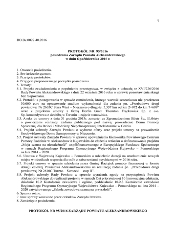 PROTOKÓŁ NR 95/2016 ZARZĄDU POWIATU