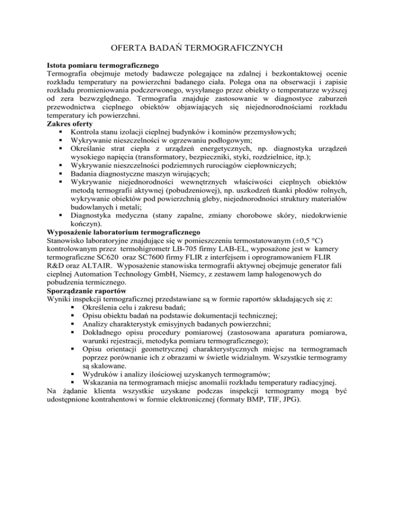 OFERTA BADAŃ TERMOGRAFICZNYCH