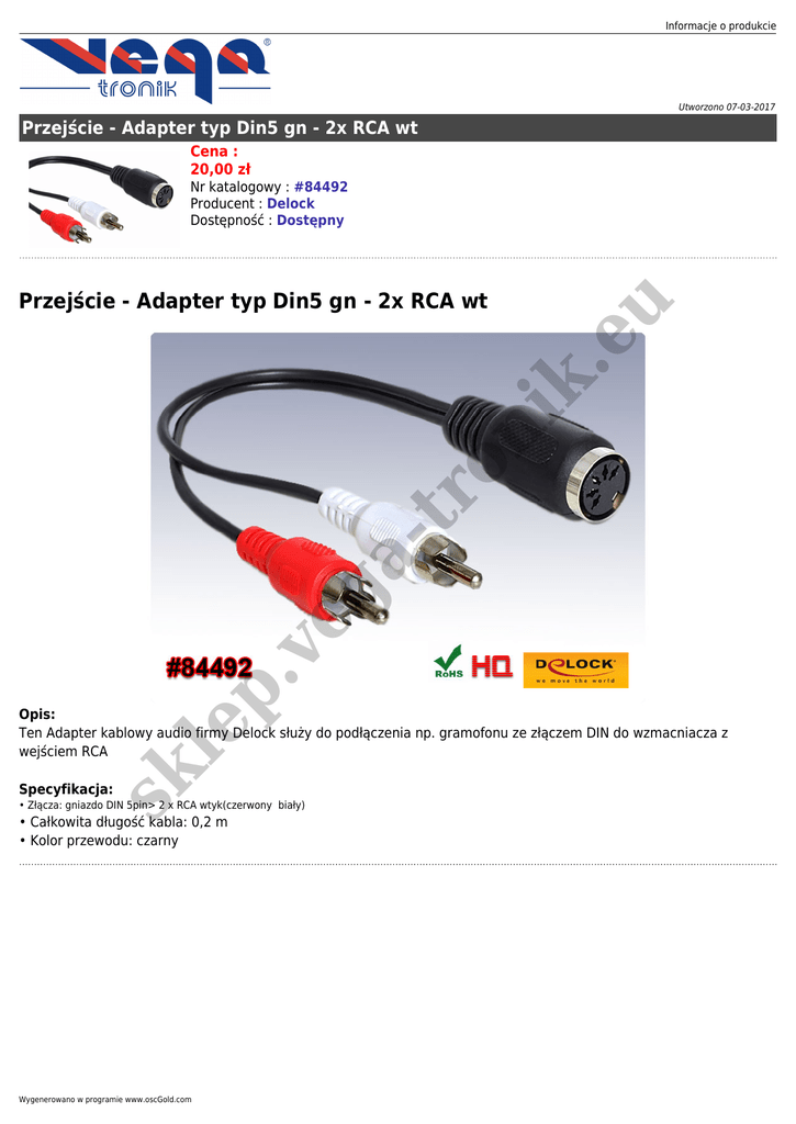 Kliknij aby pobrać dokument w formacie PDF - sklep Vega