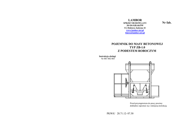 LAMBOR Nr fab. POJEMNIK DO MASY BETONOWEJ TYP ZB