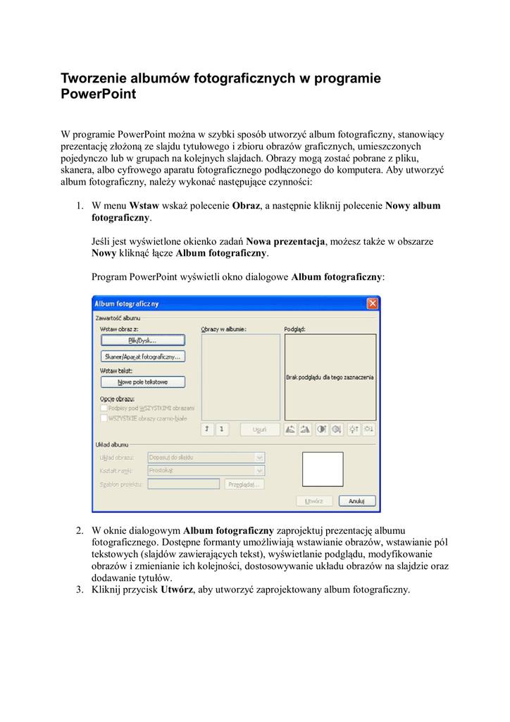 Tworzenie albumów fotograficznych w programie PowerPoint