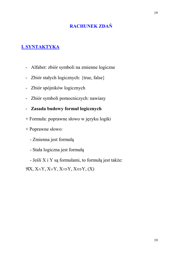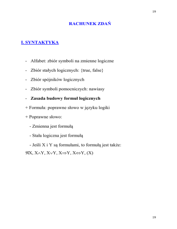 • Jeśli formuła X jest w postaci zmiennej logicznej, to