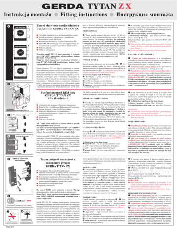 occur within the warranty period, Manufacturer will repair or replace faulty lock free of charge (Republic of Poland territory). Faults should be reported to the dealer who sold the product, and – under special circumstan−