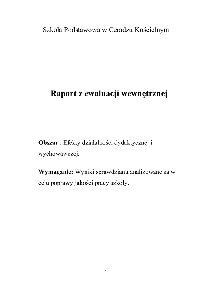 Raport z ewaluacji wewnętrznej - Szkoła Podstawowa w Ceradzu