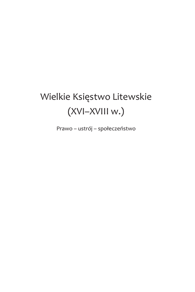 . Wielkie Księstwo Litewskie (XVI–XVIII w.) Prawo – ustrój – społeczeństwo 1 Wielkie Księstwo Litewskie (XVI–XVIII w.). Prawo – ustrój – społeczeństwo Autor: Andrzej B. Zakrzewski Recenzenci: Prof. Henryk Wisner Prof. Henryk Lulewicz Korekta: Zespół korektorski Projekt okładki, skład i łamanie: Marcin Trepczyński Wydawca: Campidoglio naszestrony.eu/campidoglio © for the text by Andrzej B. Zakrzewski 2013 © for the edition by Campidoglio 2013 ISBN: 978-83-927476-6-6 Warszawa 2013 2 Wielkie Księstwo Litewskie (XVI–XVIII w.) Prawo – ustrój – społeczeństwo Andrzej B. Zakrzewski Warszawa 2013 3 Spis treści Spis treści Wykaz skrótów...............................................................................................5 Wstęp...............................................................................................................6 Rozdział I. Stan badań..................................................................................9 Rozdział II. Periodyzacja dziejów ustroju................................................32 Rozdział III. Recepcja ustroju i prawa......................................................38 Rozdział IV. Terytorium i podziały administracyjne............................58 Rozdział V. Społeczeństwo.........................................................................61 Rozdział VI. Parlamentaryzm...................................................................88 Rozdział VII. Władza wielkoksiążęca....................................................118 Rozdział VIII. Zarząd państwem. Urzędy.............................................131 Rozdział IX. Skarbowość..........................................................................149 Rozdział X. Wojskowość...........................................................................166 Rozdział XI. Ustrój sądownictwa............................................................177 Rozdział XII. Statuty litewskie.................................................................215 Rozdział XIII. Prawo w teorii i praktyce................................................232 Rozdział XIV. Język obrotu prawnego....................................................255 Rozdział XV. Stosunek Wielkiego Księstwa Litewskiego do Korony (XVI–XVIII w.).......................................................................262 Bibliografia..................................................................................................287 4 Rozdział I. Stan badań Rozdział I Stan badań Badanie dziejów Wielkiego Księstwa Litewskiego często powiązane było z potrzebami polityki1, dotyczyło to też aspektu prawno – ustrojowego. Aktywność w zakresie badania ustroju i prawa Litwy historycznej wykazała XIX-wieczna nauka polska, w niemałej części – uważający się za Polaków, w znaczeniu politycznym – mieszkańcy ziem b. Wielkiego Księstwa Litewskiego. Pionierem badań dawnego prawa litewskiego był Tadeusz Czacki. Jego dwutomowa praca O litewskich i polskich prawach (Warszawa 1800–1801) była pierwszym opracowaniem pozbawionym z założenia przydatności praktycznej. Wcześniejsze kompendia Wincentego Skrzetuskiego czy Teodora Ostrowskiego przedstawiały bowiem ustrój i prawo Rzeczypospolitej dla potrzeb praktyków, jako prawo obowiązujące. Praca Tadeusza Czackiego – jak to cokolwiek złośliwie, acz trafnie określił Jan Kodrębski – składa się [...] głównie z erudycyjnego i chaotycznego komentarza do Statutu Litewskiego, który został poprzedzony słabo z nim związanymi rozprawkami o źródłach prawa polskiego i litewskiego, o języku statutów litewskich, o chronologii i o monecie polskiej i litewskiej2. Były to więc raczej wariacje na temat I Statutu w związku z następnymi dwoma kodeksami3. Kilkanaście lat później (w 1816 r.) wyszła w Warszawie praca Samuela Bogumiła Lindego, O Statucie Litewskim ruskim językiem i drukiem wydanym wia1 2 3 K. Błachowska, Wiele historii jednego państwa. Obraz dziejów Wielkiego Księstwa Litewskiego do 1569 roku w ujęciu historyków polskich, rosyjskich, ukraińskich, litewskich i białoruskich w XIX wieku, Warszawa 2009. J. Kodrębski, Prawo rzymskie w Polsce XIX wieku, Łódź 1990, s. 113. O pracy i części dyskusji nad nią: E. Danowska, Tadeusz Czacki 1765–1813. Na pograniczu epok i ziem, Kraków 2006, s. 211–220. 9 Rozdział I. Stan badań domość, nowocześniejsza i wnikliwsza w ujęciu od dzieła Czackiego. Po kolejnych sześciu latach Uniwersytet Wileński ogłosił konkurs na rozprawę studencką na temat wpływu prawa rzymskiego na prawo polskie i litewskie, który wygrał Aleksander Mickiewicz rozprawą Jaki wpływ prawodawstwo rzymskie na prawodawstwo polskie i litewskie mieć mogło? Po powstaniu listopadowym kilkakrotnie głos w tej materii zabrał też Ignacy Daniłowicz4. Wówczas też Henryk Rzewuski dał – wydany drukiem po ponad 170 latach – idealizujący obraz ustroju i prawa dawnej Rzeczypospolitej, nie pomijając Wielkiego Księstwa5. W Wielkopolsce Tytus Działyński przygotował i doprowadził do wydania w 1841 r. Zbiór praw litewskich6. W Wilnie zaś pojedyncze przyczynki do dziejów ustroju publikował Józef Jaroszewicz w swoim opus magnum7, jak również Józef Ignacy Kraszewski, niesłusznie lepiej znany jako powieściopisarz. Był on przecież autorem czterotomowej monografii Wilno od początków jego do roku 1750 (Wilno 1840–1842) i dwutomowej: Litwa starożytna. Dzieje, ustawy, język, wiara, obyczaje, pieśni, przysłowia, podania (Wilno 1847–1850). Również Joachim Lelewel nie pomijał w swych Dziejach Litwy i Rusi (Poznań 1844) Statutu8. W Wilnie pierwsza Komisja Archeologiczna, powołana w 1842 r., wydała w roku następnym dwujęzyczny zbiór dokumentów, głównie miejskich9 i zakończyła działalność. Podobnie efemeryczny, roczny żywot i analogiczne osiągnięcia miała komisja mińska: wydała tom dokume
