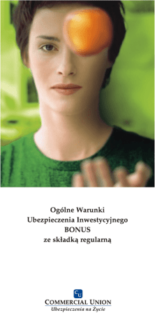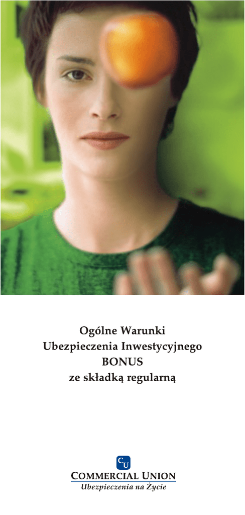 C U COMMERCIAL UNION Ubezpieczenia na ¯ycie Ogólne Warunki Ubezpieczenia Inwestycyjnego BONUS 7/2003 ze sk³adk¹ regularn¹ Niniejsze ogólne warunki ubezpieczenia zosta³y przyjête uchwa³¹ Zarz¹du Commercial Union Polska – Towarzystwa Ubezpieczeñ na ¯ycie Spó³ka Akcyjna z 6 listopada 2003 roku i wesz³y w ¿ycie 1 stycznia 2004 r. Wszelkie wzory dokumentów uzyskane drog¹ elektroniczn¹ maj¹ charakter wy³¹cznie informacyjny i nie wywieraj¹ ¿adnych skutków prawnych, a w szczególnoœci nie mog¹ stanowiæ podstawy do nawi¹zania, zmiany lub rozwi¹zania umowy ubezpieczenia z Commercial Union Polska – Towarzystwem Ubezpieczeñ na ¯ycie SA. Ogólne Warunki Ubezpieczenia Inwestycyjnego BONUS 7/2003 ze sk³adk¹ regularn¹ –1– C U COMMERCIAL UNION Ubezpieczenia na ¯ycie Ogólne Warunki Ubezpieczenia Inwestycyjnego BONUS ze sk³adk¹ regularn¹ § 1. DEFINICJE Ilekroæ w niniejszych ogólnych warunkach ubezpieczenia, wniosku o zawarcie umowy ubezpieczenia na ich podstawie, dokumencie potwierdzaj¹cym zawarcie umowy ubezpieczenia oraz w innych oœwiadczeniach sk³adanych w zwi¹zku z zawarciem tej umowy lub w jej wykonaniu u¿ywa siê wymienionych poni¿ej terminów, nale¿y przez nie rozumieæ w odpowiednim przypadku i liczbie: 1) alokacja sk³adki – przeliczanie na jednostki ubezpieczeniowych funduszy kapita³owych okreœlonej w OWU czêœci sk³adki; 2) dzieñ zap³aty sk³adki – dzieñ, w którym sk³adka znajdzie siê w posiadaniu Towarzystwa; w razie wp³aty na rachunek bankowy Towarzystwa jest nim dzieñ uznania tej wp³aty na rachunku; 3) jednostki funduszu – jednakowej wartoœci udzia³y, na które pojêciowo podzielony jest ubezpieczeniowy fundusz kapita³owy; 4) miesi¹ce ubezpieczenia – bezpoœrednio po sobie nastêpuj¹ce okresy rozpoczynaj¹ce siê odpowiednio w dniu rejestracji wniosku oraz w przypadaj¹ce w nastêpnych miesi¹cach kalendarzowych dni oznaczone t¹ sam¹ dat¹ dzienn¹; jeœli pierwszym dniem ochrony ubezpieczeniowej jest dzieñ oznaczony dat¹ dzienn¹ niewystêpuj¹c¹ w danym miesi¹cu kalendarzowym, miesi¹c ubezpieczenia rozpoczyna siê w ostatnim dniu takiego miesi¹ca kalendarzowego; 5) OWU – niniejsze ogólne warunki ubezpieczenia; 6) rachunek – wydzielony pojêciowo dla umowy ubezpieczenia rachunek jednostek funduszy, na którym jednostki funduszy s¹ zarachowywane i odliczane w sposób okreœlony w OWU; 7) rocznica ubezpieczenia – dzieñ rozpoczynaj¹cy drugi i ka¿dy kolejny rok ubezpieczenia, przy czym lata ubezpieczenia s¹ to bezpoœrednio po sobie nastêpuj¹ce okresy rozpoczynaj¹ce siê odpowiednio w dniu rejestracji wniosku oraz w przypadaj¹ce w nastêpnych latach kalendarzowych dni oznaczone t¹ sam¹ dat¹ dzienn¹; je¿eli dat¹ rejestracji wniosku jest 29 lutego, drugi rok i kolejne lata ubezpieczenia rozpoczynaj¹ siê ostatniego dnia lutego; Ogólne Warunki Ubezpieczenia Inwestycyjnego BONUS 7/2003 ze sk³adk¹ regularn¹ –3– C U COMMERCIAL UNION Ubezpieczenia na ¯ycie 8) suma ubezpieczenia – kwota, któr¹ na warunkach okreœlonych w umowie ubezpieczenia Towarzystwo zobowi¹zane jest wyp³aciæ w razie œmierci ubezpieczonego; 9) œmieræ ubezpieczonego – œmieræ ubezpieczonego wskutek nieszczêœliwego wypadku albo œmieræ naturalna ubezpieczonego, przez któr¹ rozumie siê œmieræ wskutek okolicznoœci innych ni¿ nieszczêœliwy wypadek; 10) œmieræ ubezpieczonego wskutek nieszczêœliwego wypadku – œmieræ ubezpieczonego wskutek zewnêtrznej przyczyny niemaj¹cej bezpoœredniego lub poœredniego Ÿród³a w jakimkolwiek fizycznym lub psychicznym schorzeniu ubezpieczonego, która to przyczyna zadzia³a³a w trakcie trwania ochrony ubezpieczeniowej w sposób nag³y, niezale¿nie od woli ubezpieczonego, je¿eli œmieræ nast¹pi³a nie póŸniej ni¿ w ci¹gu 90 (dziewiêædziesiêciu) dni od daty zadzia³ania opisanej przyczyny, po ukoñczeniu przez ubezpieczonego 18. (osiemnastego) a przed ukoñczeniem 70. (siedemdziesi¹tego) roku ¿ycia; 11) Towarzystwo – Commercial Union Polska – Towarzystwo Ubezpieczeñ na ¯ycie Spó³ka Akcyjna; 12) ubezpieczaj¹cy – osoba, która zawiera z Towarzystwem umowê ubezpieczenia; 13) ubezpieczeniowe fundusze kapita³owe lub fundusze – wyodrêbnione pojêciowo czêœci aktywów Towarzystwa gromadzone i inwestowane z przeznaczeniem na okreœlone wyp³aty przewidziane w umowach ubezpieczenia; 14) ubezpieczony – osoba, której ¿ycia dotyczy umowa ubezpieczenia; 15) uposa¿ony – osoba wskazana przez ubezpieczonego jako uprawniona do otrzymania, na warunkach opisanych w OWU, œwiadczenia przewidzianego w razie œmierci ubezpieczonego; 16) uposa¿ony zastêpczy – osoba wskazana przez ubezpieczonego jako uprawniona do otrzymania, na warunkach opisanych w OWU, œwiadczenia przewidzianego w razie œmierci ubezpieczonego, w sytuacji gdy w chwili œmierci ubezpieczonego nie ma uposa¿onych; 17) wartoœæ jednostki funduszu – wartoœæ, zgodnie z któr¹ jednostki funduszu s¹ zarachowywane na rachunek i odliczane z tego rachunku; wartoœæ jednostki ubezpieczeniowego funduszu kapita³owego ustalana jest zgodnie z zasadami i w terminach okreœlonych w opisie danego funduszu; 18) wartoœæ odst¹pienia – kwota, któr¹ Towarzystwo zobowi¹zuje siê wyp³aciæ w razie rozwi¹zania umowy ubezpieczenia w przypadkach wskazanych w OWU; Ogólne Warunki Ubezpieczenia Inwestycyjnego BONUS 7/2003 ze sk³adk¹ regularn¹ –4– C U COMMERCIAL UNION Ubezpieczenia na ¯ycie 19) wartoœæ polisy – wartoœæ bêd¹ca sum¹ wartoœci jednostek funduszy zgromadzonych na danym rachunku; 20) wiek ubezpieczonego – wiek ubezpieczonego okreœlony w dniu rejestracji wniosku na podstawie daty bli¿szej rocznicy jego urodzin: poprzedniej lub nastêpnej, powiêkszony o liczbê pe³nych lat ubezpieczenia; 21) zdarzenie ubezpieczeniowe – œmieræ ubezpieczonego. § 2. PRZEDMIOT I ZAKRES UBEZPIECZENIA 1. Ochrona ubezpieczeniowa polega na zobowi¹zaniu Towarz