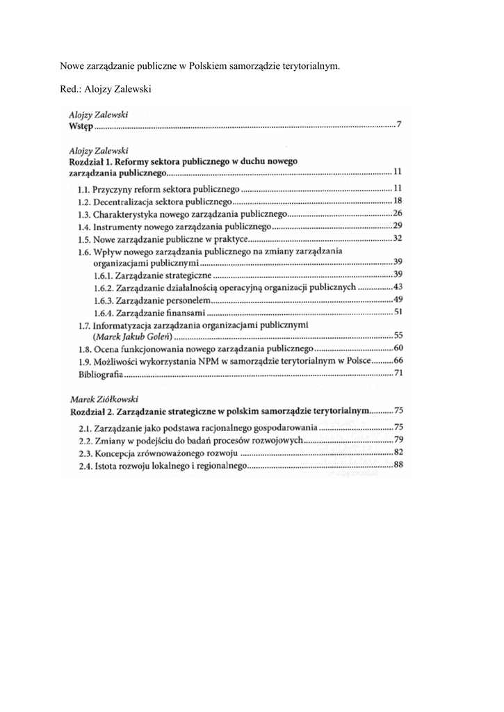 Nowe zarządzanie publiczne w Polskiem samorządzie terytorialnym. Red.: Alojzy Zalewski
