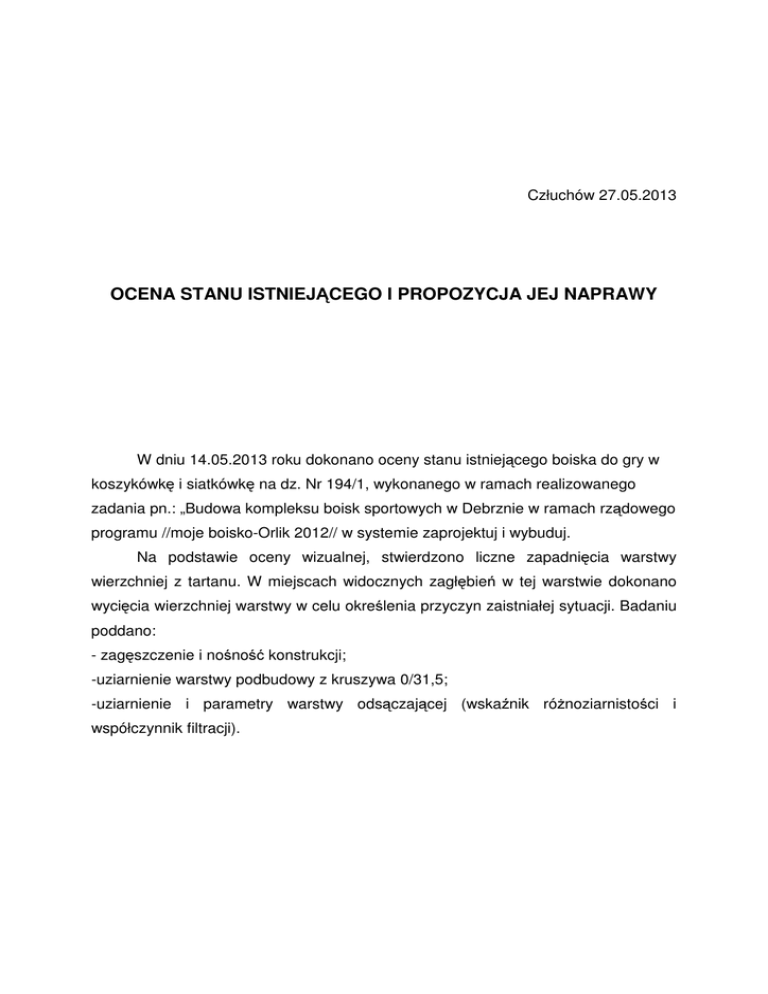 OCENA STANU ISTNIEJĄCEGO I PROPOZYCJA JEJ NAPRAWY
