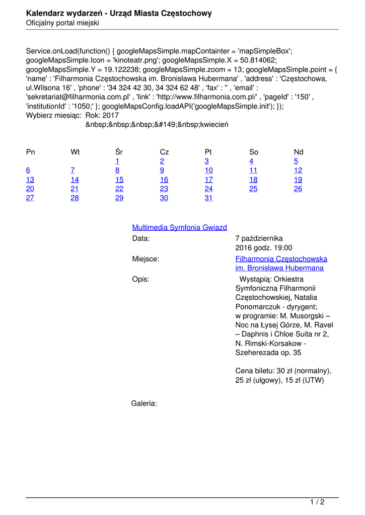 Kalendarz wydarzeń - Urząd Miasta Częstochowy