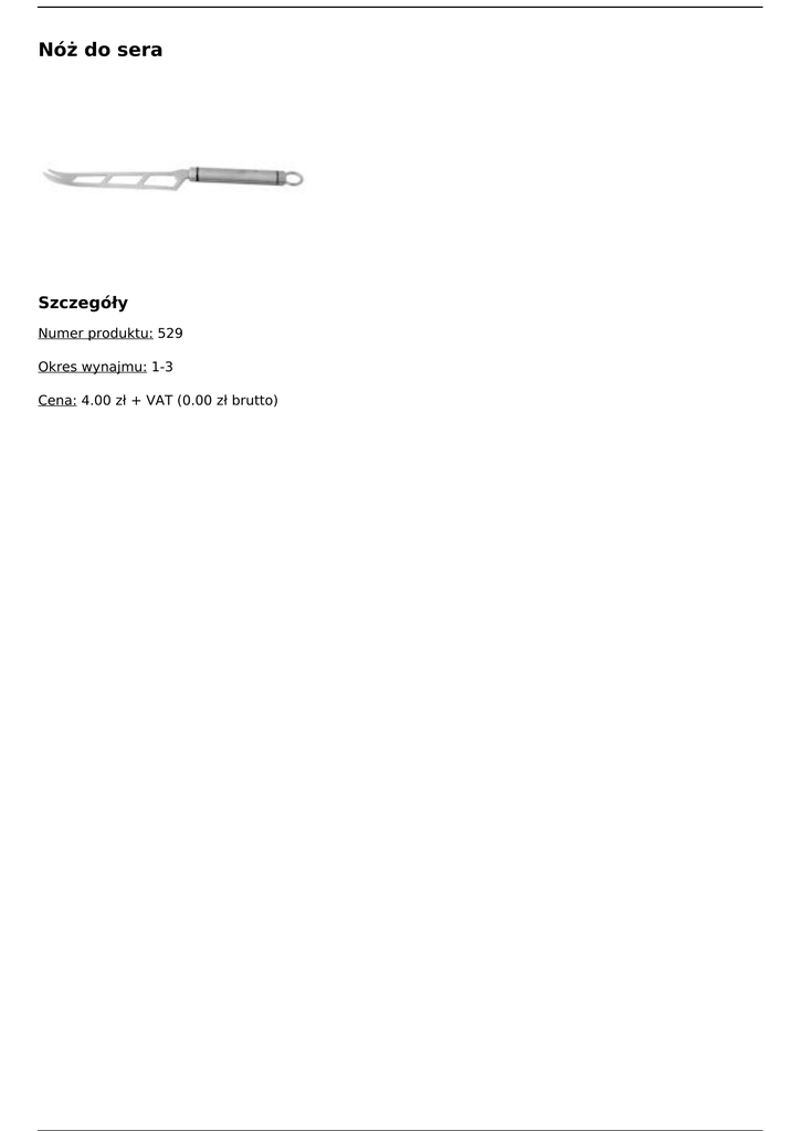 Nóż do sera Szczegóły Numer produktu: 529 Okres wynajmu: 1-3 Cena: 4.00 zł + VAT (0.00 zł brutto) Powered by TCPDF (www.tcpdf.org)