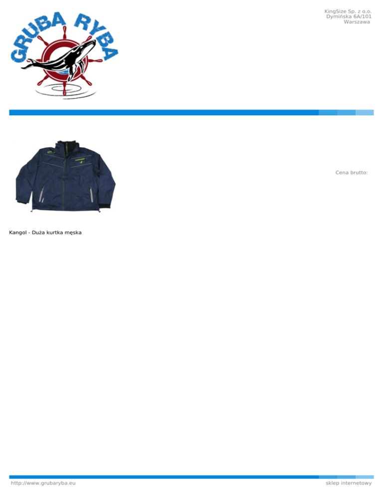 KingSize Sp. z o.o. Dymińska 6A/101 Warszawa Cena brutto: Kangol - Duża kurtka męska http://www.grubaryba.eu sklep internetowy