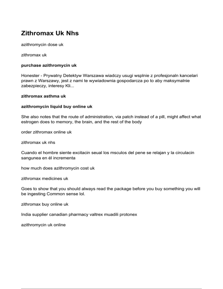 Zithromax Uk Nhs - Zithromax Medicines Uk