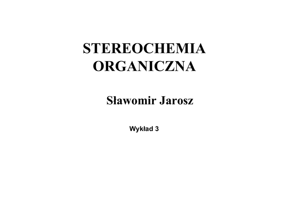 STEREOCHEMIA ORGANICZNA Sławomir Jarosz Wykład 3 antyperiplanarna synperiplanarna synklinalna antyklinalna H H H H OH H H H O H OH HO H H H O H H OH H O H H H H Konformacja uprzywilejowana O O s-trans s-cis s-trans (C=O) = 1674 cm-1 (C=C) = 1643 cm-1 s-cis (C=O) = 1698 cm-1 (C=C) = 1631 cm-1 STEREOIZOMERIA CZĄSTECZEK CYKLICZNYCH Zamknięcie łańcucha z utworzeniem pierścienia powoduje wzrost symetrii układu w rezultacie zaniku grup końcowych CYKLOHEKSAN Temat do ćwiczeń: znaleźć wszystkie elementy symetrii tego układu jeśli pierścień sześcioczłonowy jest płaski (a wszystkie podstawniki są takie same) Sachse jako pierwszy (w 1890 r.) wykazał, że cykloheksan nie jest płaski i może występować w dwóch formach: krzesłowej oraz łodziowej C C C C C C Narysować cykloheksan w rzucie Newman’a znaleźć elementy symetrii dekaliny androstan - wzór przestrzenny H H H H O OH O * RO RO * * RO RO * RO -metylo-D-glukozyd * RO * * RO * OMe konfiguracji absolutnej konfiguracja ?? OMe OH R * RO O * R OH R * O RO * * RO OMe Wyznaczenie konfiguracji względnej (np. X-ray) pozwala na ustalenie S OH R * O RO * * RO O * RO RO * * OMe * RO OMe W jaki sposób wyznaczyć konfigurację absolutną cząsteczki Jakimi metodami można określić bezwzględne ułożenie atomów w przestrzeni W roku 1874 van’t Hoff i Le Bell stwierdzili, że modele A oraz B są na siebie nienakładalne; jeden skręca płaszczyznę światła spolaryzowanego w lewo a drugi w prawo o ten sam kąt. a b c d c d a Obliczenia kwantowo – mechaniczne b rentgenografia Dyfrakcja promieni X na lekkich jądrach (H, C) daje obraz zależny jedynie od położenia. Tym samym zgodność faz nie zależy od tego, po której stronie (prawej czy też lewej) znajduje się atom. Tą metodą można określić TYLKO WZGLĘDNĄ konfigurację Jądra ciężkich atomów pochłaniają promienie X w pewnym zakresie krzywej absorpcji. Jeśli odpowiada progowi absorpcji ciężkiego atomu to obok absorpcji nastąpi przesunięcie fazowe (anomalna absorpcja). To zjawisko pozwala określenie na ułożenia atomów w przestrzeni SKRĘCALNOŚĆ, skręcalność optyczna, właściwość substancji optycznie czynnej, polegająca na skręcaniu płaszczyzny polaryzacji światła podczas przechodzenia światła spolaryzowanego przez tę substancję; skręcalność właściwa — skręcenie płaszczyzny polaryzacji światła monochromatycznego podczas przechodzenia przez 10-centymetrową warstwę roztworu związku optycznie czynnego zawierającego 1 g tego związku w 1 cm3; skręcalność molowa — iloczyn skręcalności właściwej i 1/100 masy molowej związku optycznie czynnego; kąt skręcenia (mierzony w odpowiednich warunkach, zwykle w temp. 20°C) płaszczyzny polaryzacji światła monochromatycznego charakteryzuje daną substancję — jest jej indywidualną cechą, w przypadku roztworów związków optycznie czynnych — zależy także od stężenia; Zjawiska chiralooptyczne Oddziaływania światła spolaryzowanego z chiralnym ośrodkiem a. Światło płasko polaryzowane b. Światło kołowo spolaryzowane w prawo Zróżnicowane opóźnienie lewo- i prawoskrętnie spolaryzowanego światła wytwarza dwójułomność kołową [] = / (nM – nP.) n wsp. refrakcji Zróżnicowana absorpcja prowadzi do dichroizmu kołowego φ = / (kM – kP.) Skręcalność właściwa – skręcalność zmierzona k wsp. absorpcji światła kołowo spolaryzowanego [] = 100 / l c l – długość; c stężenie wyrażone w gramach na 100 mL Efekt Cottona DODATNI Efekt Cottona Ujemny gdy ujemne maksimum ORD (oraz CD) występuje przy niższych częstościach Quasi enancjomery Spektroskopia CD pozwala na 1. Potwierdzenie czynności optycznej związku 2. Na podstawie reguł empirycznych na określenie konfiguracji absolutnej BnO BnO przykład 7S BnO BnO 7R BnO OH OH O OMe H OH BnO O OMe H OH Wyznaczanie konfiguracji absolutnej Obliczenia kwantowo – mechaniczne O H O COOH H Me OH H HO Me HOOC COOH związek chiralny HO OH H COOH konfigurację powiązano ze skręcalnością na drodze obliczeń teoretycznych CHO OH OH CHO CHO OH OH HO aldehyd D-glicerynowy OH OH D-ryboza OH D-arabinoza D-ksyloza D-liksoza Ryboza, arabinoza, ksyloza, liksoza All Altruists Gladly Make Gum In Gallon Tanks Jak określono konfigurację wszystkich cukrów ?? Dowód Emila Fischera 1891 rok !!!! Nobel 1902 Cukry są optycznie czynne ([]D różne od 0) O ? ? ? H Fischer przyjął arbitralnie, że jeśli na ostatnim centrum chiralnym grupa OH jest skierowana w prawo to związek ma konfigurację D OH CH2OH Struktura została zweryfikowana poprzez X-ray w roku 1952 arabinoza CHO HNO3 ? ? H OH OH HNO3 CHO CHO HO OH HO OH H OH CH2OH który wzór odpowiada glukozie a który mannozie HO OH H OH CH2OH
