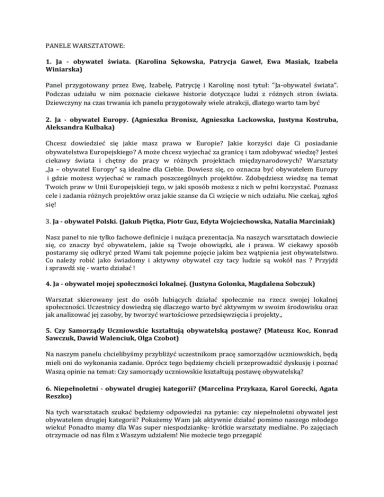 PANELE WARSZTATOWE: 1. Ja - obywatel świata. (Karolina