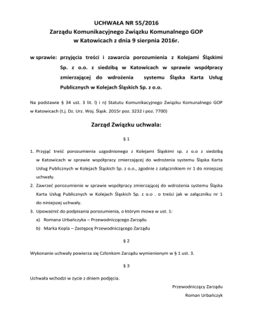 UCHWAŁA NR 55/2016 Zarządu Komunikacyjnego Związku