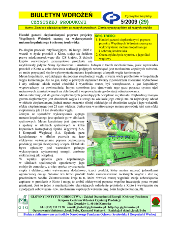BIULETYN WDROŻEŃ CZYSTSZEJ PRODUKCJI Egzemplarz bezpłatny 5/2009 (29) Motto: Ziemi nie odziedziczyliśmy po naszych przodkach, Ziemię wypożyczyliśmy od naszych wnuków Handel gazami cieplarnianymi poprzez projekty SPIS TREŚCI Wspólnych Wdrożeń szansą na wykorzystanie 1. Handel gazami cieplarnianymi poprzez metanu kopalnianego i ochronę środowiska projekty Wspólnych Wdrożeń szansą na wykorzystanie metanu kopalnianego Po długim procesie ratyfikacyjnym, 16 lutego 2005 r. i ochronę środowiska wszedł w życie protokół z Kioto, stając się źródłem 2. Ocena cyklu życia wyrobu, a jego ślad prawa międzynarodowego dla 128 krajów. Z dużych węglowy krajów rozwiniętych przemysłowo protokołu nie ratyfikowały jedynie Stany Zjednoczone i Australia. Jednym z trzech mechanizmów, jakie wprowadza protokół z Kioto w celu ułatwienia realizacji podjętych zobowiązań jest mechanizm wspólnych wdrożeń, co może przyczynić się do wykorzystania metanu kopalnianego z kopalń węgla kamiennego. Metan kopalniany, wydzielający się podczas eksploatacji węgla, stwarza wiele problemów w kopalniach węgla kamiennego. Jest to gaz, który w pewnych stężeniach tworzy z powietrzem mieszanki wybuchowe i aby uniknąć takich stężeń chodniki i wyrobiska muszą być wentylowane, a gaz kopalniany wyprowadzany na powierzchnię. Innym sposobem jest ujmowanie tego gazu poprzez system ujęć metanowych zainstalowanych na dole kopalń i wyprowadzenie go do stacji odmetanowania. Metan zaliczany jest do gazów cieplarnianych powodujących ocieplanie się klimatu. Najbardziej znanym gazem cieplarnianym jest dwutlenek węgla i z uwagi na wielkość jego emisji ma on największy udział w efekcie cieplarnianym, jednak metan znacznie silniej oddziałuje od dwutlenku węgla i jego wskaźnik efektu cieplarnianego jest 21 razy większy. Jedna tona wyemitowanego metanu powoduje taki sam efekt cieplarniany jak 21 ton dwutlenku węgla. Jednym ze sposobów wykorzystania ujętego metanu kopalnianego jest spalanie go w silnikach spalinowych. Metan kopalniany jest ujmowany i spalany w silnikach spalinowych w kilku kopalniach Jastrzębskiej Spółki Węglowej S.A. i Kompanii Węglowej S.A. Spalanie gazu kopalnianego w silniku pozwala na jego efektywne wykorzystanie poprzez jednoczesną produkcję energii elektrycznej i ciepła. Układ taki bywa opłacalny pod warunkiem pełnego wykorzystania wytworzonej energii, zarówno elektrycznej jak i cieplnej. W wyniku spalenia gazu kopalnianego w silnikach spalinowych ograniczamy jego emisję do atmosfery, a więc oprócz wytwarzania ciepła i elektryczności wytwarzamy dodatkowy, trzeci produkt, który można nazwać jednostkami ograniczonej emisji. Właśnie ten trzeci produkt budzi zainteresowanie niektórych krajów i stał się przedmiotem handlu. Zainteresowane kraje to te, które również muszą wypełnić swoje zobowiązania zapisane w protokole z Kioto i mogą to zrobić efektywniej poprzez wspólne inwestycje poza swymi granicami. Jest to jeden z mechanizmów ułatwiających wdrożenie protokołu z Kioto i wywiązanie się z podjętych zobowiązań - tzw. mechanizm wspólnych wdrożeń (ang. Joint Implementation, JI). GŁÓWNY INSTYTUT GÓRNICTWA – Zakład Oszczędności Energii i Ochrony Powietrza Krajowe Centrum Wdrożeń Czystszej Produkcji Plac Gwarków 1, 40-166 Katowice tel.: (032) 259 21 38 e-mail: [email protected] http://cp.gig.katowice.pl Opracowanie biuletynu: Jacek Boba, Krzysztof Stańczyk Redakcja i skład: Jacek Boba Biuletyn dofinansowano ze środków Narodowego Funduszu Ochrony Środowiska i Gospodarki Wodnej Tego typu rozwiązania, w których strona trzecia inwestuje w przedsięwzięcie zapewniając sobie zakup jednostek ograniczonej emisji ze spalania metanu kopalnianego w zdecydowany sposób poprawiają ekonomikę takich układów i sprawiają, że stają się interesujące dla metanowych kopalń węgla kamiennego. Możliwości sprzedaży jednostek zredukowanej emisji Parlament Europejski i Rada Unii Europejskiej Dyrektywą 2003/87/WE ustanowiły system handlu przydziałami emisji gazów cieplarnianych we Wspólnocie Europejskiej w celu wspierania redukcji emisji gazów cieplarnianych w sposób ekonomicznie efektywny. Dyrektywa ma na celu przyczynienie się do wykonania zobowiązań Wspólnoty Europejskiej i jej państw członkowskich dotyczących redukcji antropogenicznych emisji gazów cieplarnianych, zgodnie z protokołem z Kioto zatwierdzonym decyzją Rady 2002/358/WE w dniu 25 kwietnia 2002 roku. Dyrektywa wprowadza przepisy pozwalające na realizację projektów ograniczenia emisji poprzez zastosowanie mechanizmu czystego rozwoju (Clean Development Mechanism, CDM) oraz wspólnych wdrożeń (Joint Implementation, JI). Pozwoli to na zwiększenie różnorodności niskonakładowych rozwiązań prowadząc do zmniejszenia całkowitych kosztów realizacji protokołu z Kioto. Można się spodziewać, że poprzez zwiększenie popytu na kredyty związane z mechanizmem JI przedsiębiorstwa wspólnotowe będą inwestować w rozwój i transfer przyjaznych dla środowiska zaawansowanych technologii. Państwa Członkowskie mogą zezwolić operatorom na wykorzystanie poświadczonych redukcji emisji (Certified Emission Reduction, CER), począwszy od 2005 roku i jednostek redukcji emisji (Emission Reduction Units, ERU) od roku 2008. Warunki i procedury dotyczące systemu rejestrów, mającego na celu wykorzystanie CER oraz ERU są zawarte w rozporządzeniu Komisji. W celu nabycia uprawnień do emisji, a następnie możliwości sprzedaży tych uprawnień określony podmiot musi zgodnie z procedurą zarejestrować przedsięwzięcie powodujące obniżenie emisji gazów cieplarnianych. Przedsięwzięcie może zrealizować samodzielnie bądź skorzystać z któregoś z mechanizmów przewidzianych protokołem z Kioto np. z mechanizmu wspólnych wdrożeń. W każdym z wymienionych przypadków przedsiębiorstwo musi przygotować zestaw dokumen