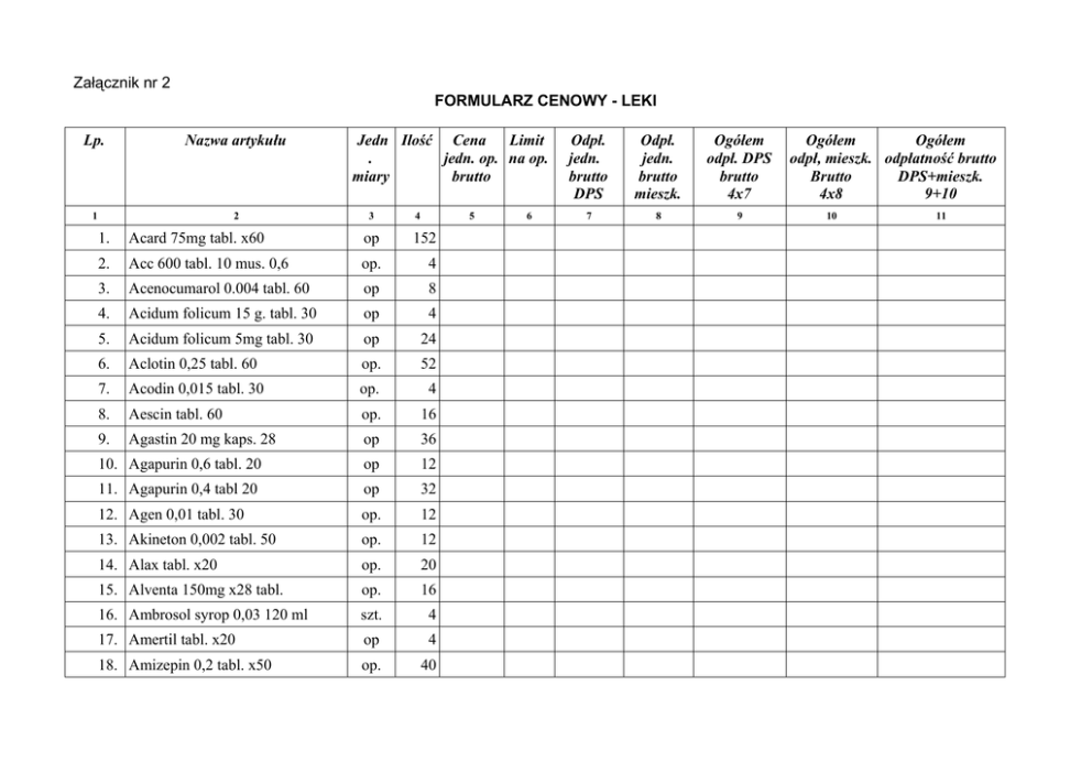 Załącznik nr 2 FORMULARZ CENOWY - LEKI Lp