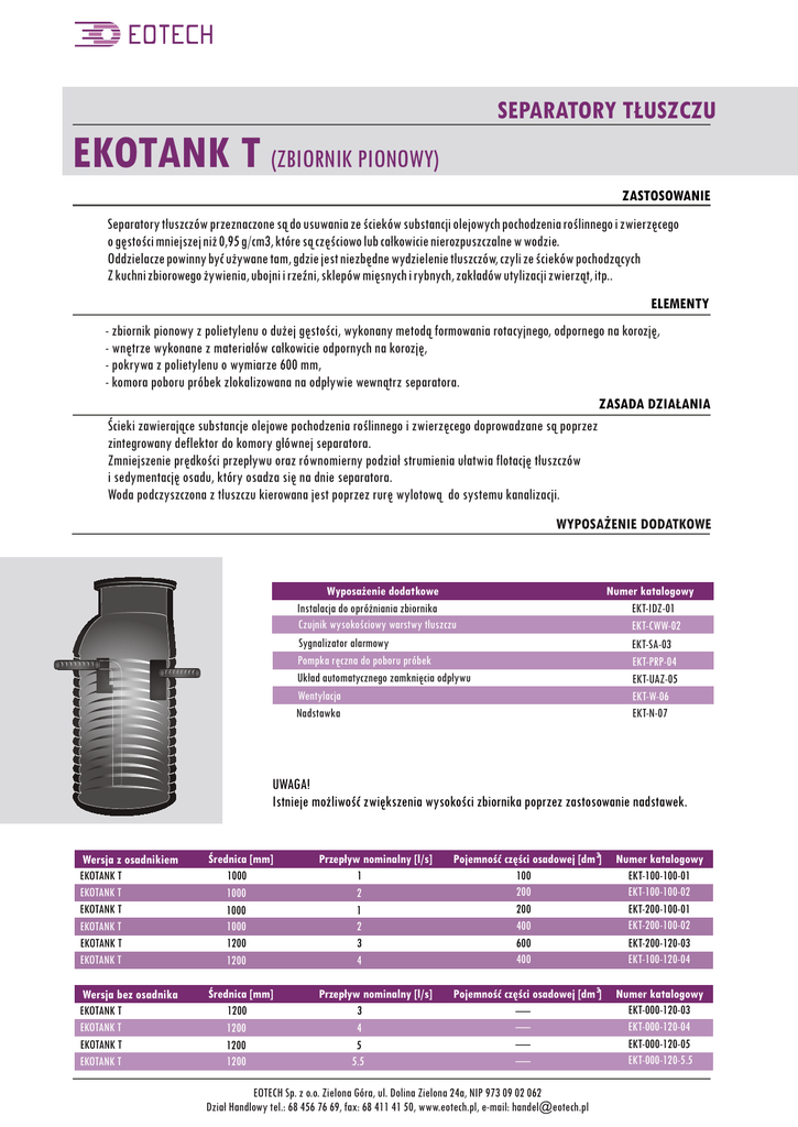 separatory tłuszczu ekotank t (zbiornik pionowy)