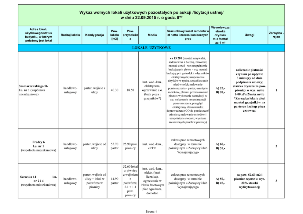 Lokale po aukcji 23 wrzesień 2015