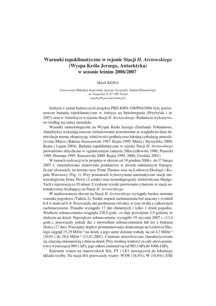 Warunki topoklimatyczne w rejonie Stacji H. Arctowskiego (Wyspa