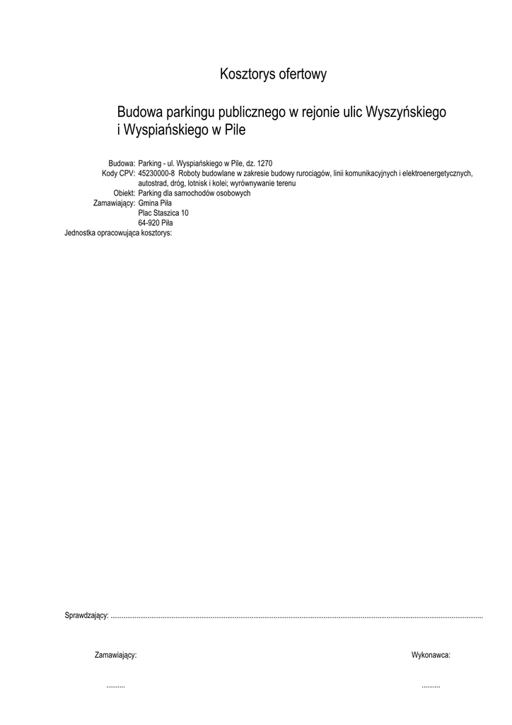Kosztorys ofertowy Budowa parkingu publicznego w rejonie ulic