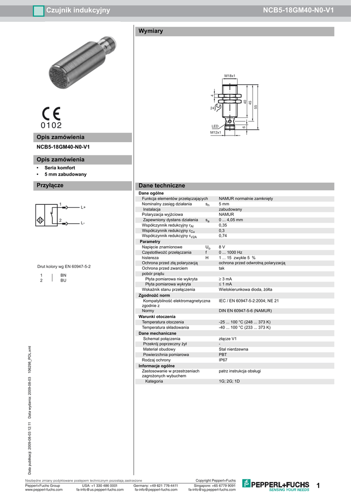 1 Czujnik indukcyjny NCB5-18GM40-N0-V1