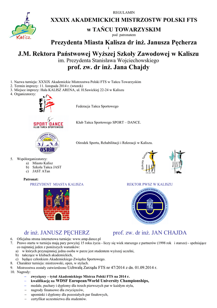 regulamin - XXXIX Akademickie Mistrzostwa Polski FTS w Tańcu