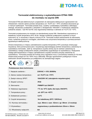 Termostat ETN4 karta katalogowa - Tom-El