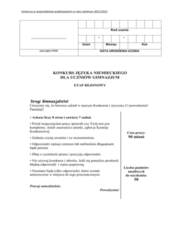 KONKURS JĘZYKA NIEMIECKIEGO DLA UCZNIÓW GIMNAZJUM