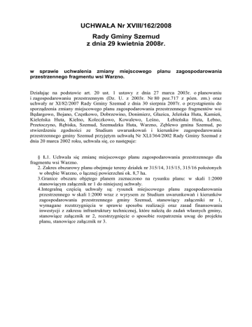 UCHWAŁA Nr XVIII/162/2008 Rady Gminy