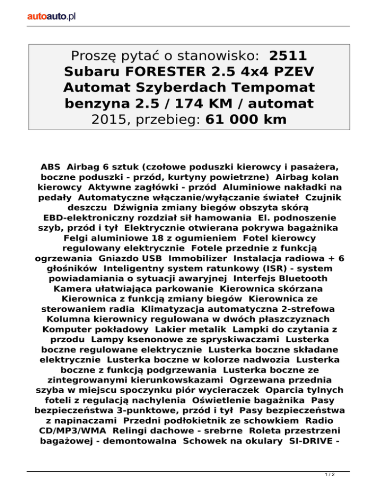 Proszę pytać o stanowisko: 2511 Subaru FORESTER