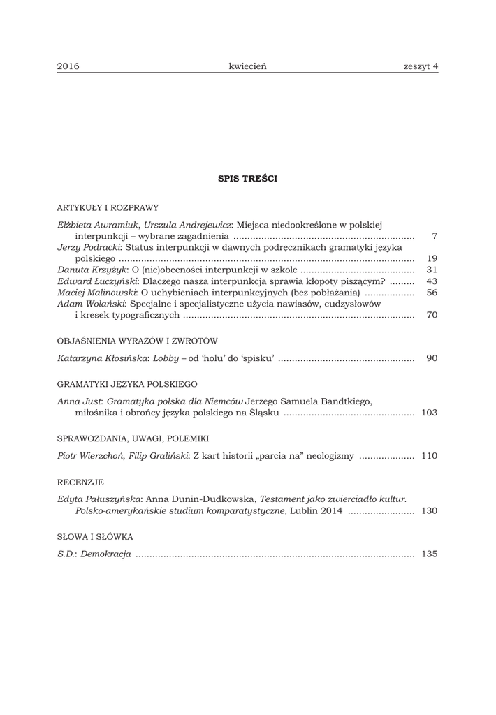 Poradnik Językowy NR 4/2016 - SPIS TREŚCI