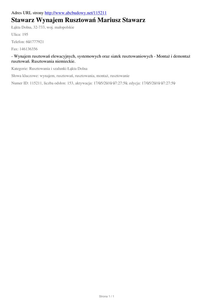 Stawarz Wynajem Rusztowan Mariusz Stawarz