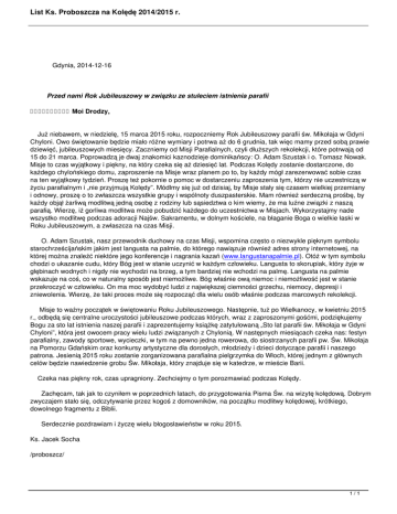 List Ks. Proboszcza na Kolędę 2014/2015 r.