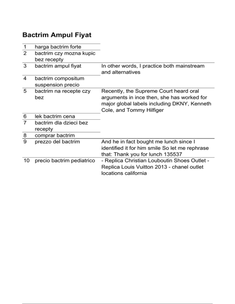 Bactrim Ampul Fiyat 1 2 3 4 5 6 7 8 9 harga bactrim forte bactrim czy mozna kupic bez recepty bactrim ampul fiyat bactrim compositum suspension precio bactrim na recepte czy bez lek bactrim cena bactrim dla dzieci bez recepty comprar bactrim prezzo del bactrim 10 precio bactrim pediatrico Powered by TCPDF (www.tcpdf.org) In other words, I practice both mainstream and alternatives Recently, the Supreme Court heard oral arguments in ince then, she has worked for major global labels including DKNY, Kenneth Cole, and Tommy Hilfiger And he in fact bought me lunch since I identified it for him smile So let me rephrase that: Thank you for lunch 135537 - Replica Christian Louboutin Shoes Outlet Replica Louis Vuitton 2013 - chanel outlet locations california