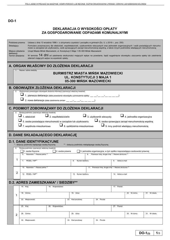do-1 deklaracja o wysokości opłaty za gospodarowanie odpadami